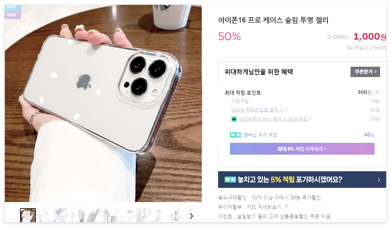 아이폰16 프로 역시 기본형 케이스를 많이 착용을 하시는데요. 아무래도 아이폰 유저분들은 여전히 얇고 그립감 좋은 투명케이스를 선호한다고 할수있습니다. 그래서 오늘은 투명 케이스 형태로 1.5미리 젤리 케이스 추천드립니다. 파격가(1,000원)로 판매되고있으니 꼭 한번 사이트 방문해보세요.
